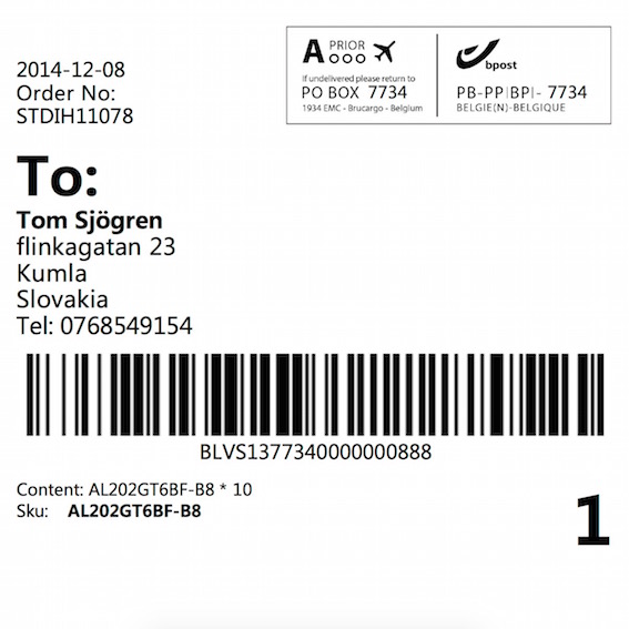 | 美国paypal地址EUB标签10x10cm | 地址单 | 10cm×10cm | |